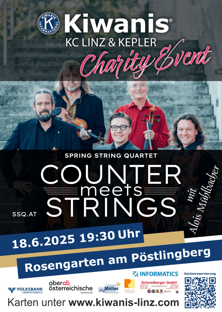 Am 18. Juni 2025 verwandelte sich der Rosengarten in Linz in eine Bühne für ein außergewöhnliches Charity-Konzert, das Musikliebhaber und Unterstützer sozialer Projekte gleichermaßen begeisterte. Der Reinerlös kommt Kinder und deren Familien im Zentralraum zugute, somit vereinte dieser Abend musikalische Spitzenklasse mit gesellschaftlichem Engagement. Kiwanis ist die zweitgrößte Kinderhilfsorganisation der Welt und setzt sich nachhaltig dafür ein, jungen Menschen bessere Zukunftschancen zu ermöglichen.